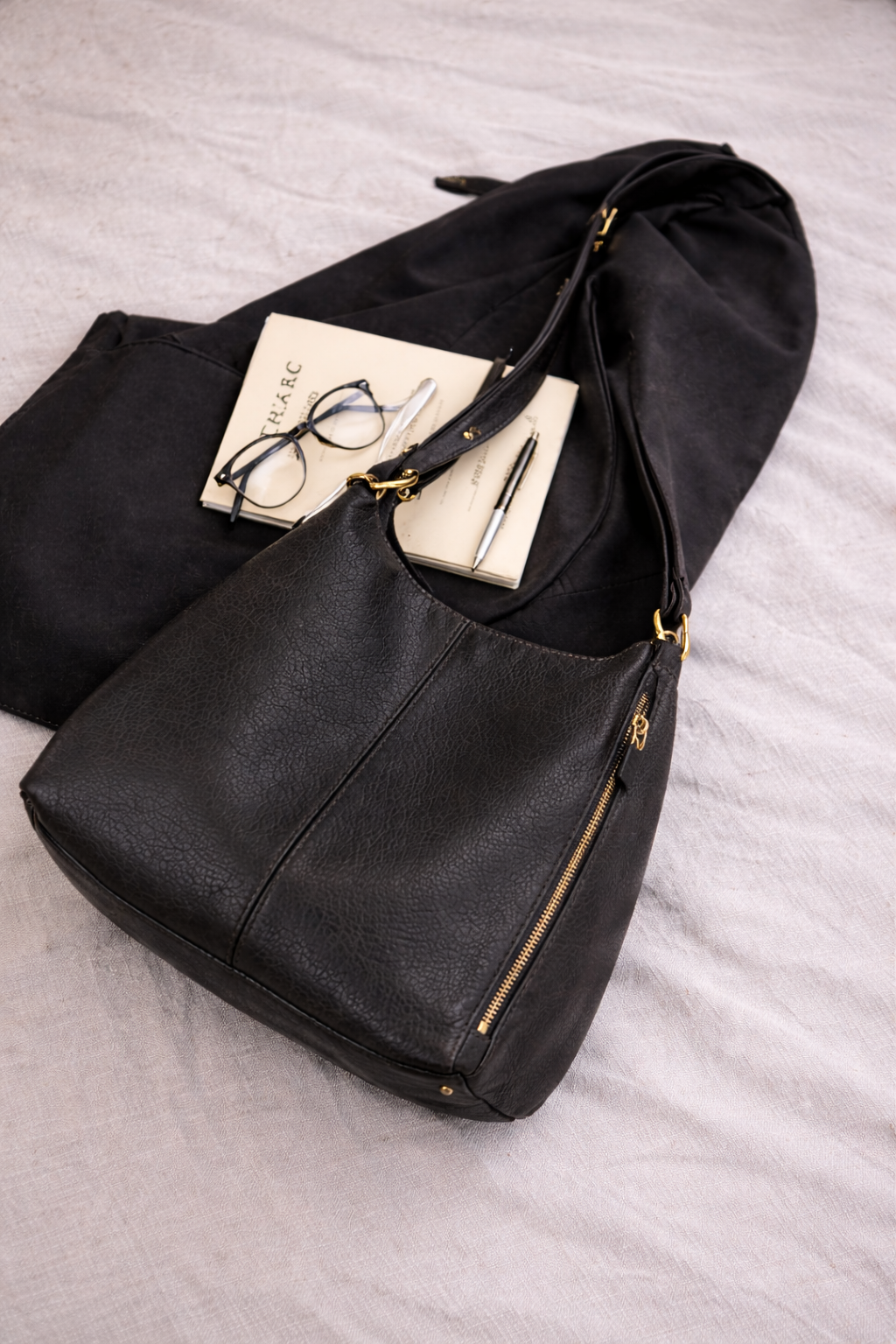 Väskan är utformad för att bära vardagliga nödvändigheter, såsom plånbok, telefon, smink och nycklar, vilket gör den idealisk för dina dagliga behov.